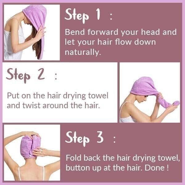 Step 2 : Put on the hair drying towel and twist around the hair.